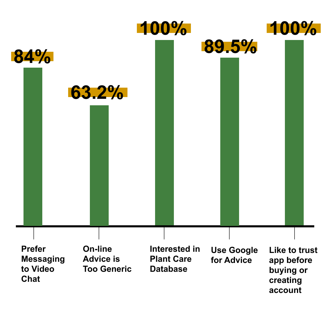 100% thought they would use the following features: plant database with care information, articles on plant care/inspiration, and online classes on plant care.